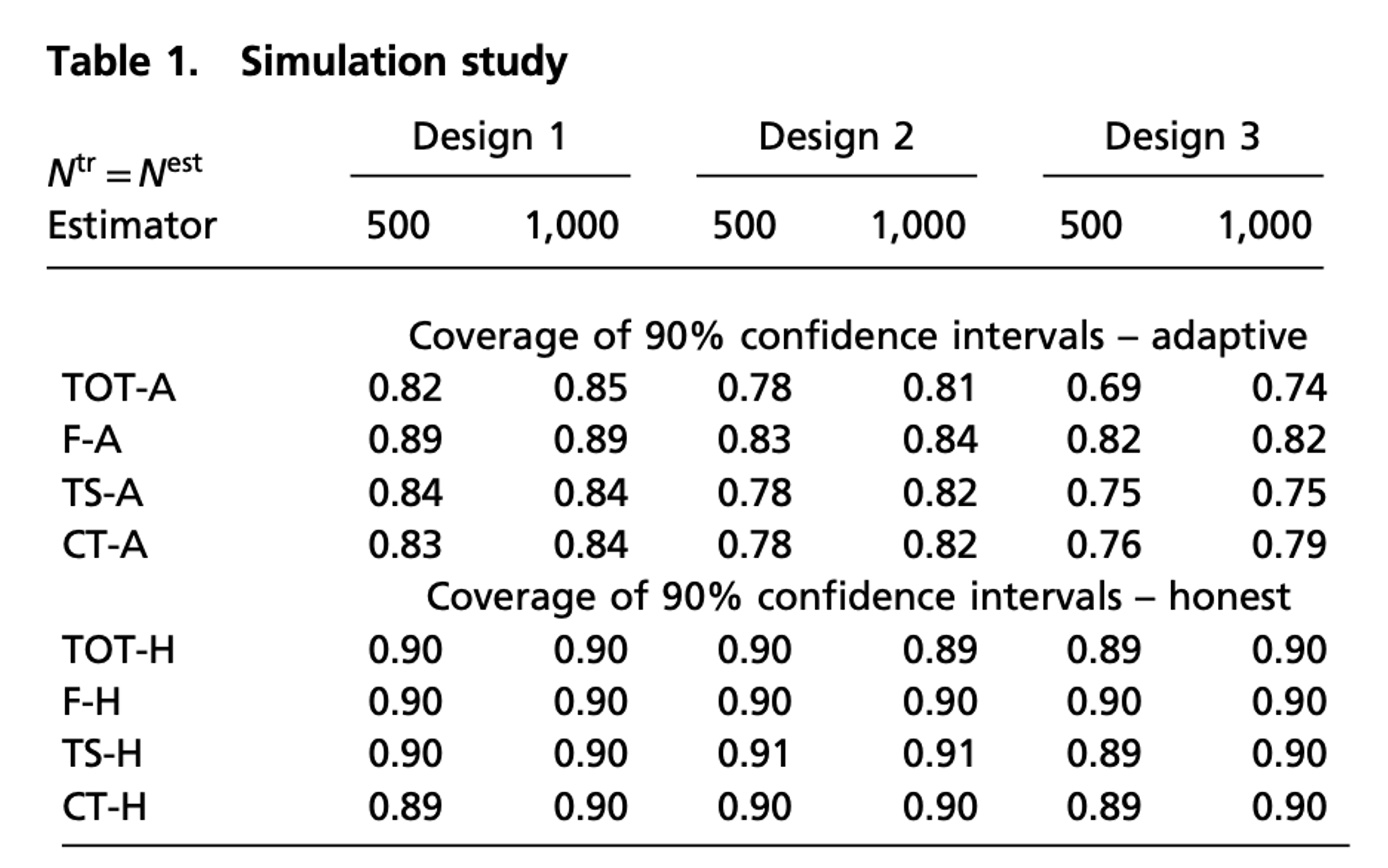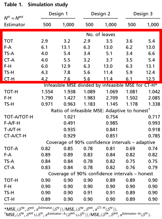 Holding tree from \mathcal{S}^{\color{red}tr} fixed, can use standard methods to conduct inference (confidence interval) within each leaf of the tree on \mathcal{S}^{\color{red}te}